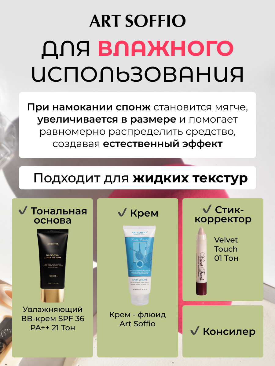 BEAUTY BLENDER АЛАЯ РОЗА от ART SOFFIO сделает ваш макияж максимально качественным и равномерным!